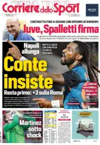 ‘Conte insiste‘ è la riga del titolo Corriere dello Sport ha optato per dopo che martedì l’allenatore del Napoli ha vinto 1-0 contro il Lecce.