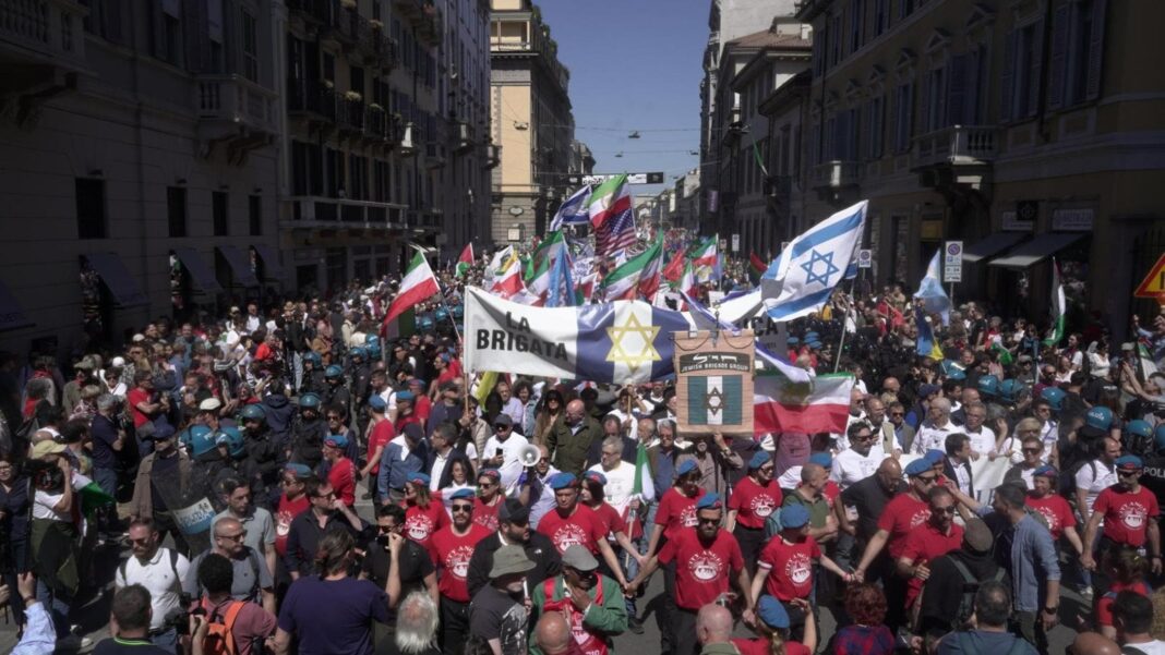 “La bandiera d’Israele non può” sventolare al corteo nazionale per la festa della Liberazione. Così il presidente dell’Anpi Gianfranco Pagliarulo, prima della partenza della manifestazione. “La bandiera ucraina va bene, ci può stare perché – ricorda – l’Ucraina è un Paese che è stato invaso dai russi, quella di Israele no e per un motivo molto semplice, lo stesso per cui non c’è la bandiera della Russia. Infatti, se è vero come si è detto che bisogna distinguere l’aggressore e l’aggredito per quello che riguarda Gaza o l’Iran la situazione è chiara: c’è un aggressore che si chiama Israele ma anche Stati Uniti d’America e un aggredito, che è il popolo palestinese”. “Quindi la bandiera ucraina francamente penso ci stia” bene nel corteo, “ma quella israeliana e quella americana francamente preferirei non vederle – ha concluso – perché non c’entrano con questa manifestazione”.