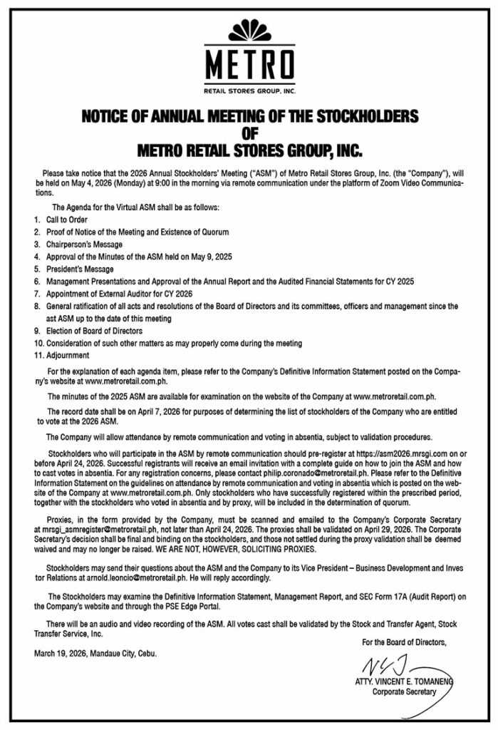 Metro Retail Stores Group, Inc. terrà l’assemblea annuale degli azionisti il ​​4 maggio tramite Zoom