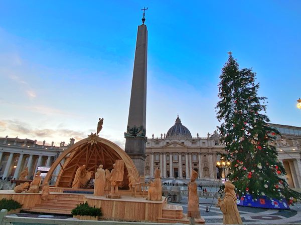Presepi (presepi) sono una forma d’arte in Italia. Il più grande e impressionante si trova, ovviamente, in Piazza San Pietro e vale davvero la pena vederlo. La scena è al centro della piazza, la visita è gratuita ed è suggestiva sia di giorno che di notte. Solitamente le luci si accendono al tramonto.